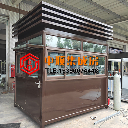 案例样式:咖啡色方形钢结构岗亭